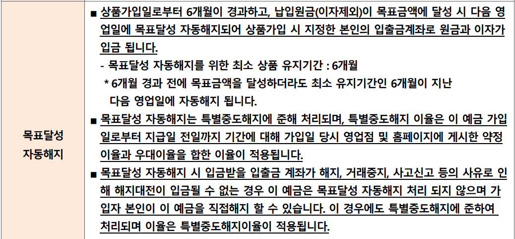 목표금액에 도달할 시 자동해지가 되는 시스템입니다.