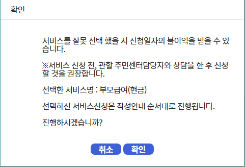 4단계에서 신청완료가 되면, 행정복지센터 등에서 대상자 통합 조사 및 심사 후 선정이 되면 서비스 지원이 됩니다.