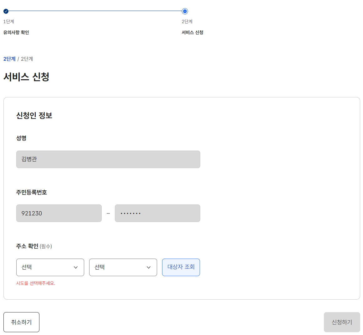 주소를 입력해서 대상자 조회를 하면 인감 신고 여부가 나옵니다.