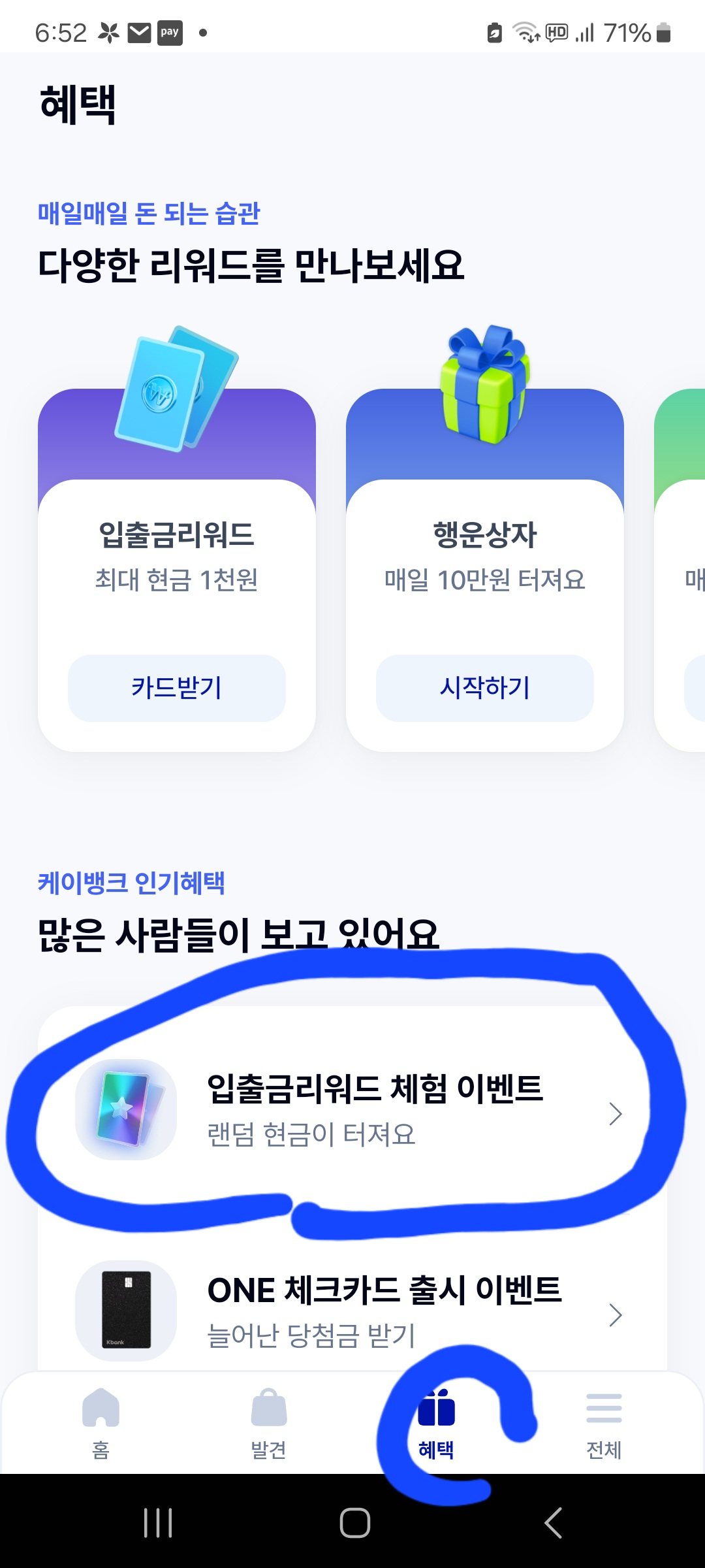 케이뱅크에 신규 계좌를 개설하셨다면, 입출금리워드 들어가는 법을 알아야하는데,