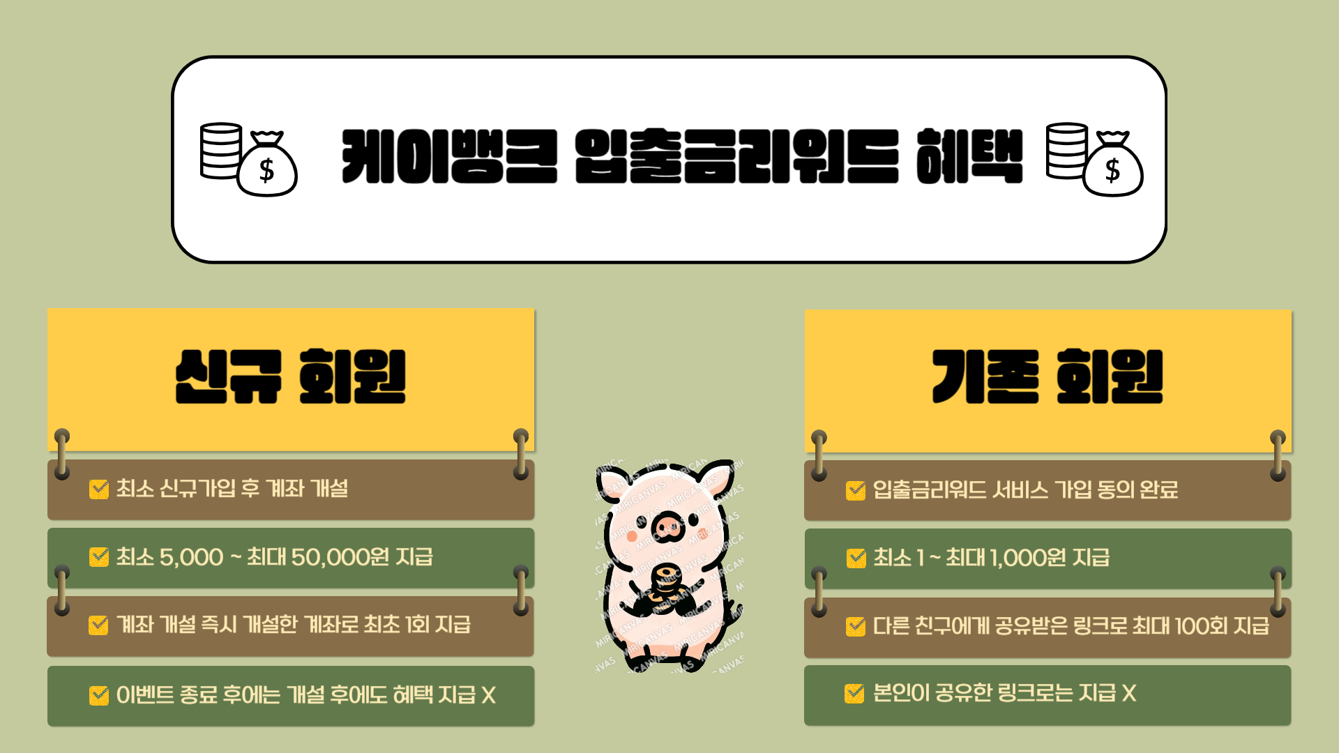 신규회원과 기존 회원 간의 입출금리워드 혜택이 다르다는 것이 포인트입니다!
